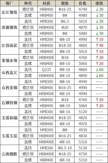 下調7家,占比46.7%,調價幅度10-40元/噸;